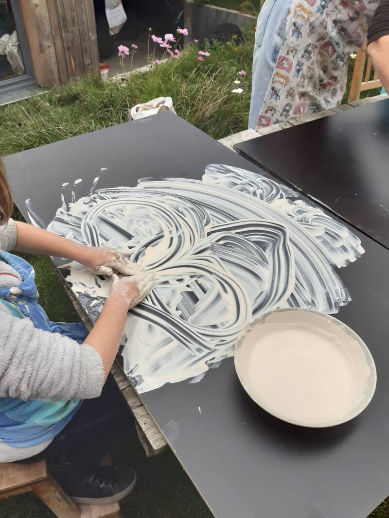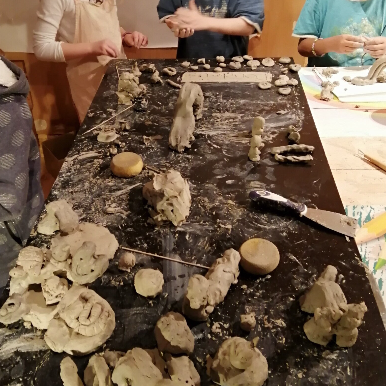 L’atelier du "Jeu d’argile et de peinture", inspiré en partie de la démarche d’Arno Stern et de Daniel de Montmollin, se veut comme un espace libre de toutes contraintes du quotidien.